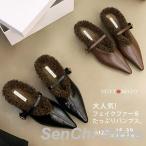 ファー パンプス レディース ファー付き ローファー ポインテッドトゥ ストラップ付き ふわもこ フラット 軽量 おしゃれ 可愛い 歩きやすい 履きやすい 美脚