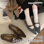 スエード調パンプス リボン付き レディース 痛くない オフィス ぺたんこ フラットパンプス フラットシューズ 通勤 パンプス 柔らか
