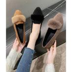 1A6【秋最新】【2足以上で送料無料】 裏起毛あったかファー付きシューズ パンプス ぺたんこ ボアシューズ ファーシューズ バーゲン