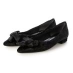 ベルベット フラットパンプス ぺたんこ レディース(ブラック, 25.0 cm)