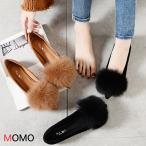 もこもこファー パンプス 平底 ぺたんこ パンプス 疲れにくいパンプス ベルベット 毛並み素材 暖か 楽ちん コットンスクープシューズ オールシーズン