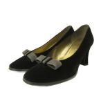 アンテプリマ ANTEPRIMA ベルベットリボン パンプス 25.5cm ブラック 黒系 スエード エナメル 日本製 レディース