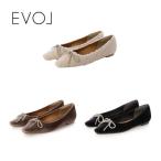 EVOL イーボル 軽量・クッション入り スクエアリボンフラットパンプス IZ5773 レディース シューズ 靴 ベロア ベルベット 綺麗め 上品 フェミニン ガーリー