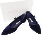 MANOLO BLAHNIK マノロブラニク KULOGLU ベルベットフラットパンプス ネイビー 35 1/2 IT7X4EEGCU7S