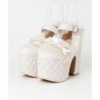 パンプス ヨースケYOSUKEウィメンズ厚底パディングキルティングソールモコモコファーGGリボン甲ビジュウストラップパンプス4450089