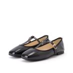 フォーマルシューズ エナメル調 スクエア フラット Tストラップシューズ レディース