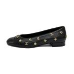 【名東】シャネル パンプス バレリーナ アイコンスタッズ ブラック 黒 G45136 サイズ371/2C 靴