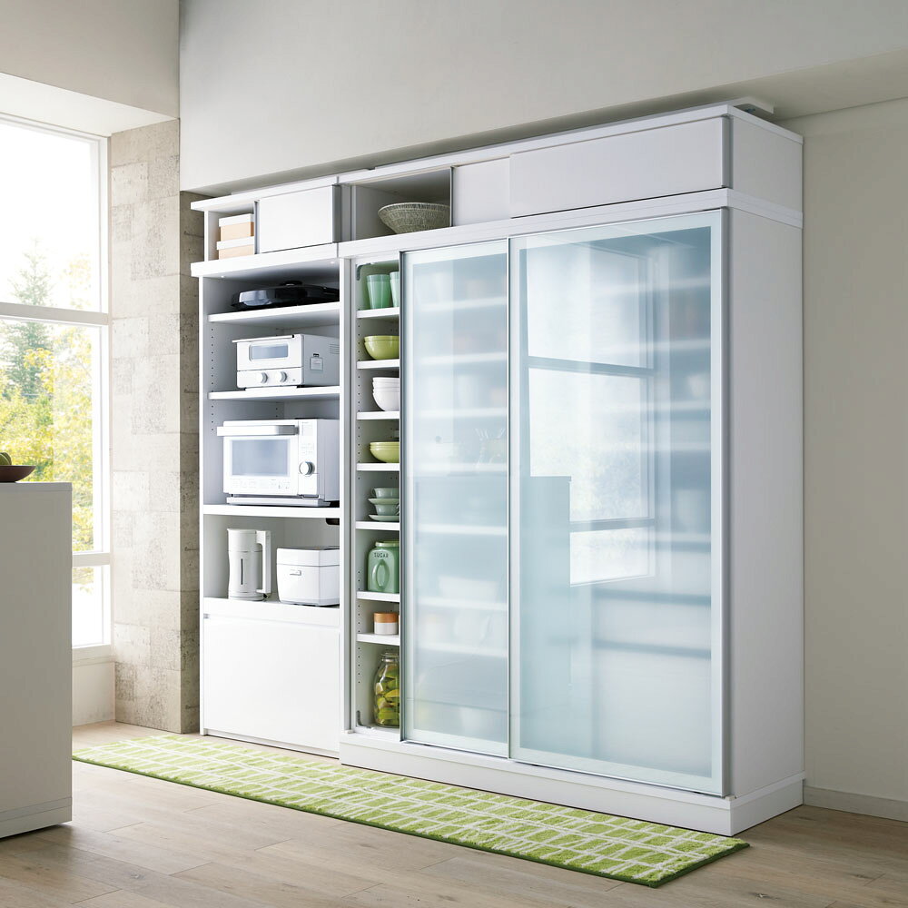 【クーポン10%OFF 3/26 1:59迄】 狭いキッチンでも広々使える引き戸式大型パントリーシリーズ スライド収納庫 ガラス扉 幅80cm キッチンボード キッチン収納 586535 \LINE友だち登録でクーポン/