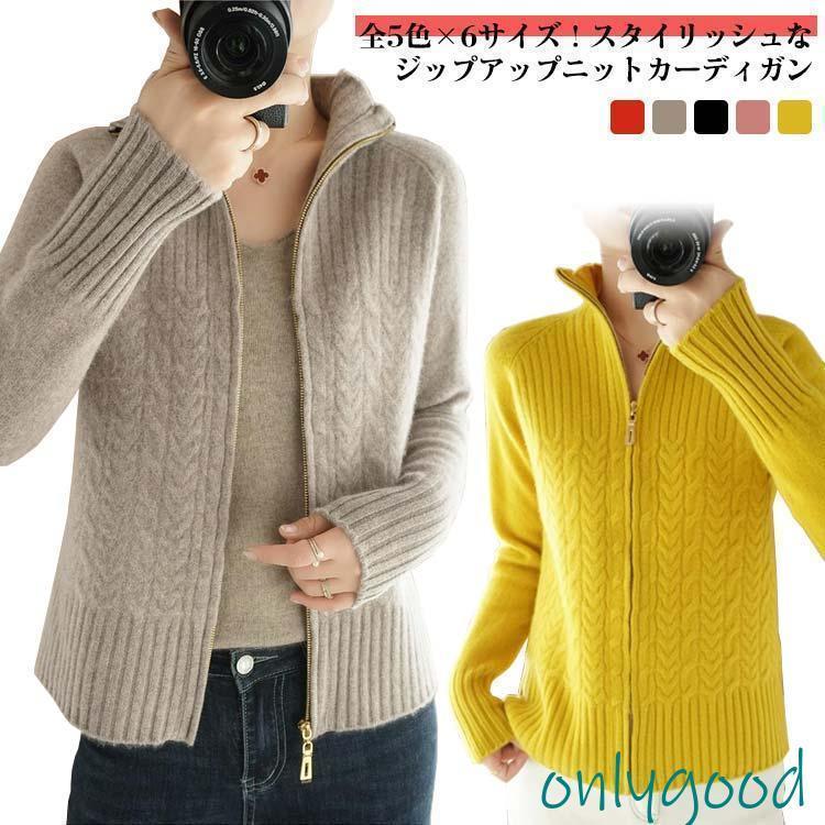【期間限定10%OFF】【週間ランキング入賞!】ニットパーカー レディース ジップアップ ニットカーディガン ハイネック 立ち襟 カーディガン ニット セーター ジャケット ケーブル編み 長袖 20