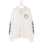 クロムハーツ スクロールラベル プリント ジップアップ パーカー メンズ ホワイト CHROME HEARTS 中古 【アパレル・小物】