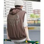 【SALE/50%OFF】aimoha aimoha/英文字刺繍オーバーサイズノースリーブパーカー アイモハ トップス パーカー・フーディー グレー