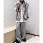 パーカー 「NOWLE」ライン柄 ノースリーブ ジップ パーカー/ワイド スウェット パンツ セットアップ メンズ