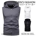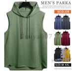 メンズ ノースリーブ ベスト パーカー フード付ベスト チョッキ トップス メンズ タンクトップ スポーツ ジョギング ジムウェア