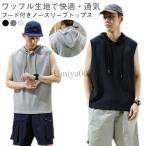 爆買 ノースリーブパーカー フード付きタンクトップ ワッフル素材 タンクトップ ヒップホップ ストリート系 メンズ ジムウェア 夏用 トップス tシャツ 袖