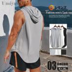 パーカー タンクトップ メンズ 筋トレ トレーニングウェア 薄手 フード付き スポーツ カットオフ 速乾 通気性 ノースリーブ インナー 袖なし パーカー 無地 カジ