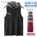 爆買 タンクトップ メンズ 接触冷感 速乾 ストレッチ トップス フード付き 超伸縮 ノースリーブパーカー スポーツウェア トレーニング