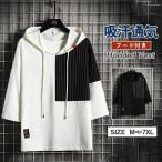 パーカー 七分袖 配色 メンズ ルーズ ゆったり ビッグシルエット 夏パーカー スポーツ 切り替え 半袖 7分袖 おしゃれ フード付きパーカー ルームウェア 夏物