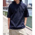 パーカー 梨地フルZIP5分袖フードパーカ メンズ
