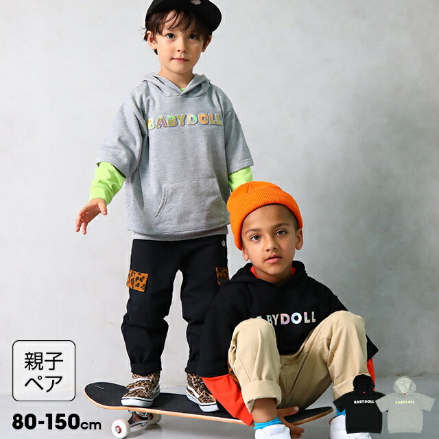 パーカー 親子お揃い 5分袖 ロゴ パーカー 5445K ベビードール BABYDOLL ベビー キッズ 男の子 女の子 キッズ 子供服 男の子 女