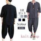 【特価】メンズ 夏服 部屋着 セットアップ メンズ Tシャツ ハーフパンツ ダボシャツ パンツ 上下 セット アンサンブル 半袖 Vネック 和式パーカー 無地