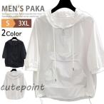ハーフジップ 半袖 アノラックパーカー メンズ 無地 薄手 夏パーカー 7分袖 ジップパーカー プルオーバーパーカー トップス