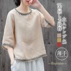 ブラウス Tシャツ レディース 夏 綿麻 リネン 7分袖 トップス 無地 薄手 体型カバー 大きいサイズ uvカット ゆったり 柔らかい カジュアル