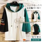 パーカー 七分袖 配色 メンズ ルーズ ゆったり ビッグシルエット 秋パーカー スポーツ 切り替え 半袖 7分袖 おしゃれ フード付きパーカー 夏物 春 秋