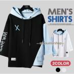 パーカー メンズ 七分袖 パーカ 重ね着風 プルオーバーパーカー 夏物 お兄系 カジュアル ストリート フード付き