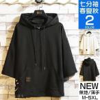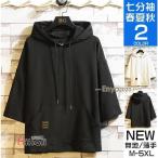 パーカー メンズ 7分袖 夏服 tシャツ プルオーバー フード付き カジュアル 無地 ゆったり 大きいサイズ スポーツ おしゃれ サマーパーカー 夏物