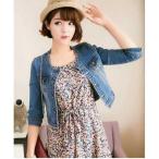 春物 ノーカラーデニムジャケット レディース着痩せGジャン まる首 7分袖パーカージャケット デニムピーコート背が高く見せるGジャン
