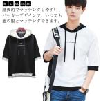 メンズ 半袖 サマーパーカー ルームウェア カットソー 7分袖 夏パーカー カジュアル スポーツウェア 綿 フーディー トップス 大きいサイズ フード