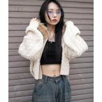 パーカー WEGO/「25年秋冬新作」フェイクファー付きケーブルニットパーカー レディース