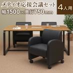 法人様限定 会議テーブルセット 4人用 テーブル ソファ 会議テーブル おしゃれ メティオ2.0 古木調 1500×750 パーソナルソファー ベルセア 4脚セット