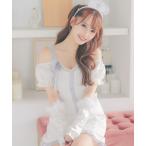 コスプレ コスプレ かわいい ナース セクシー ツイード フリル オフショル ワンピース 3点セット