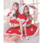 コスプレ サンタ コスプレ トナカイ アニマル 半袖 オフショルダー ベルト付き へそ出し フレア ミニ セットアップ 7点セット かわいい クリスマ