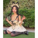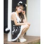 コスプレ コスプレ かわいい 黒猫 ネコ アニマル ツイード リボン ガーリー へそ出し ウエストカット ワンピース 4点セット