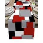 【並行輸入品】レッド グレー ブラック テーブルランナー 長さ36インチ 農家ドレス スカーフ、ミドルセンチュリー 抽象アートテーブルランナー、