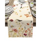 【並行輸入品】秋のボタニカルテーブルランナー 長さ48インチ ファームハウス ドレススカーフ 秋のユーカリの葉 牧歌的な花 鳥 ダイニングテーブ