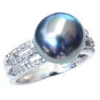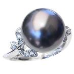 パール リング レディース 真珠リング 指輪 タヒチ黒蝶真珠 12mm 18金 k18 ホワイトゴールド ダイヤモンド リング 普段使い プレゼント ご褒美 自分買い pu