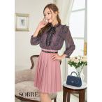 ドレス フラワー刺繍 レース 切り替え プリーツロング パーティー ドレス 結婚式 お呼ばれ オケージョン