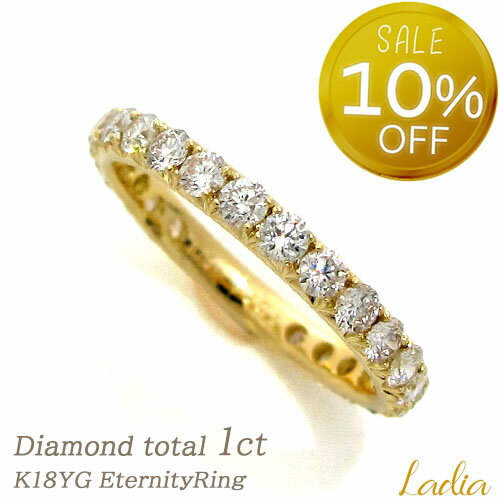 【10%OFF★スーパーSALE】Xmasセール開催中 ダイヤモンド 1ct エタニティ リング イエローゴールド ゴールド 天然ダイヤ 18金 K18 指輪 彼女 女性 妻 プレゼント 大人 女性 レディース アニバーサリー 記念日 結婚 クリスマス プレゼント