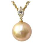 南洋白蝶真珠 k18 ペンダントネックレス ダイヤモンド パール 13.2mm 小豆チェーン40cmスライド調整付 送料無料 人気 プレゼント ギフト 自分買い pu