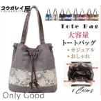 トートバッグ レディース キャンバス エスニック ファスナー仕切り 紐締め マチ広 大きめ プリント 大容量 手提げバッグ カジュアル オシャレ