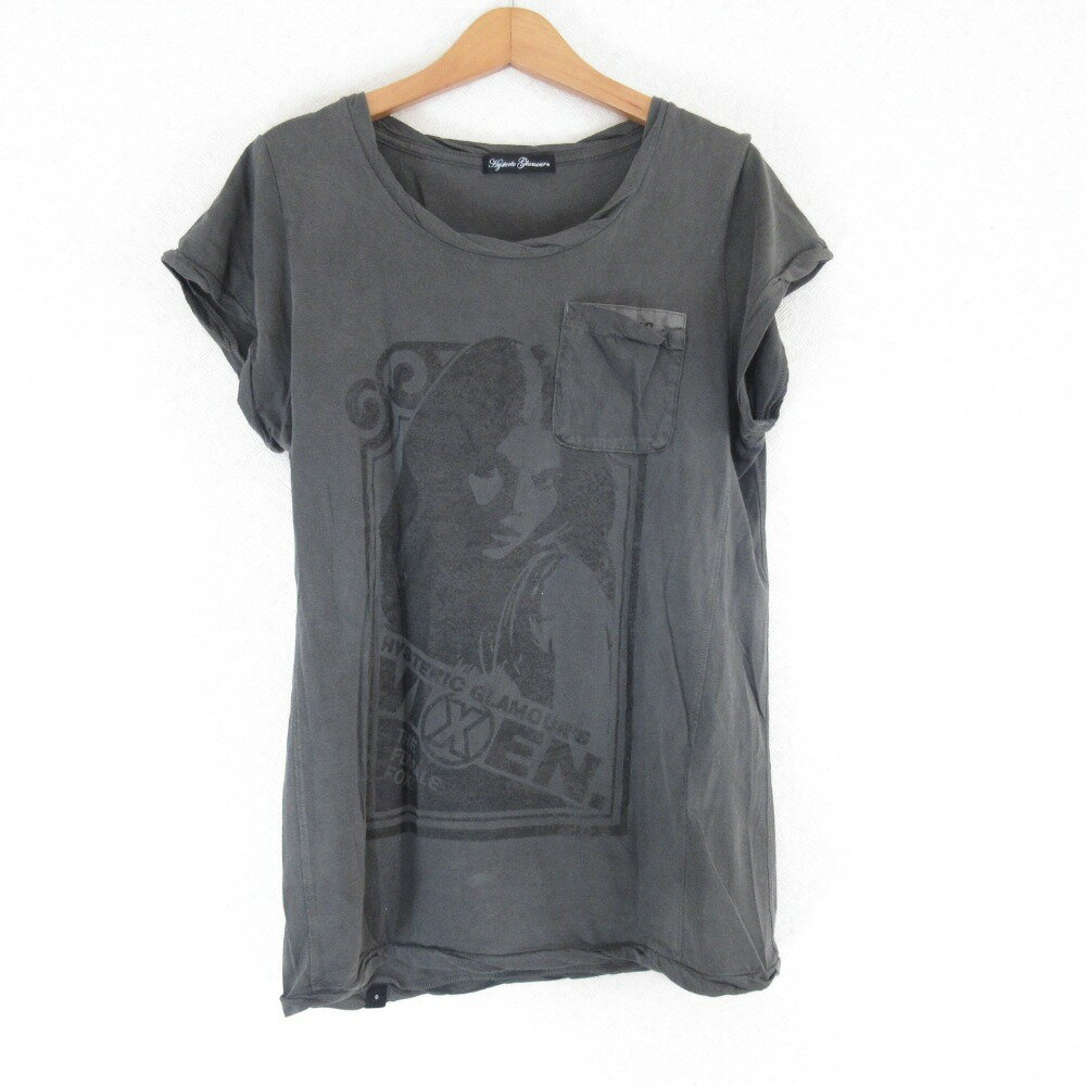 【中古】良品 HYSTERIC GLAMOUR ヒステリックグラマー プリントポケットTシャツ F グレー レディース Luxs ブランド古着のリュクス