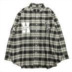 【中古】極美品 21aw ヒステリックグラマー × ウィンダンシー HYSTERIC GLAMOUR × WIND AND SEA オンブレ チェック シャツ CHECK SHIRT カットソー ロゴ ワッペン オーバーサイズ XL グレー メンズ 【ベクトル 古着】 250521