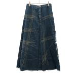 美品 HYSTERIC GLAMOUR ヒステリックグラマー デニム ロング スカート スリット 刺繍 カットオフ 2AK-9200 フリーサイズ 青 ブルー レディース 古着 中古