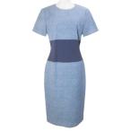 ヒューゴボス HUGO BOSS ロングワンピース 切り替え 半袖 タイト 総柄 日本サイズM相当 DE36 UK8 IT40 US4 MX26 ブルー系 .X