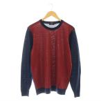 ヒューゴボス HUGO BOSS REGULARFIT EXTRAFINE MERINO ニット セーター プルオーバー 長袖 切替 M 赤 紺 レッド ネイビー /DF ■OS ■AD メ