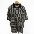 ヒューゴボス HUGO BOSS GOLF ポロシャツ 半袖 ゴルフ ウエア ロゴ 刺繍 ボーダー 黒 ブラック 白 ホワイト M コットン メンズ