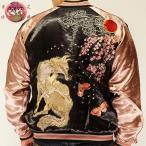 花旅楽団 ハナタビガクダン 和柄 スカジャン メンズ 総刺繍 リバーシブル 櫻と狐 SSJ-522 送料無料